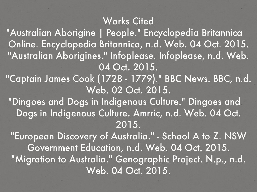 "Australian Aborigine | People." Encyclopedia Britannica Online. Encyclopedia Britannica, n.d. Web. 04 Oct. 2015.