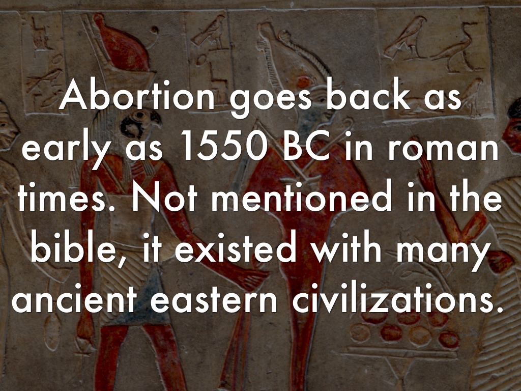 Abortion goes back as early as 1550 BC in roman times. Not mentioned in the bible, it existed with many ancient eastern civilizations.