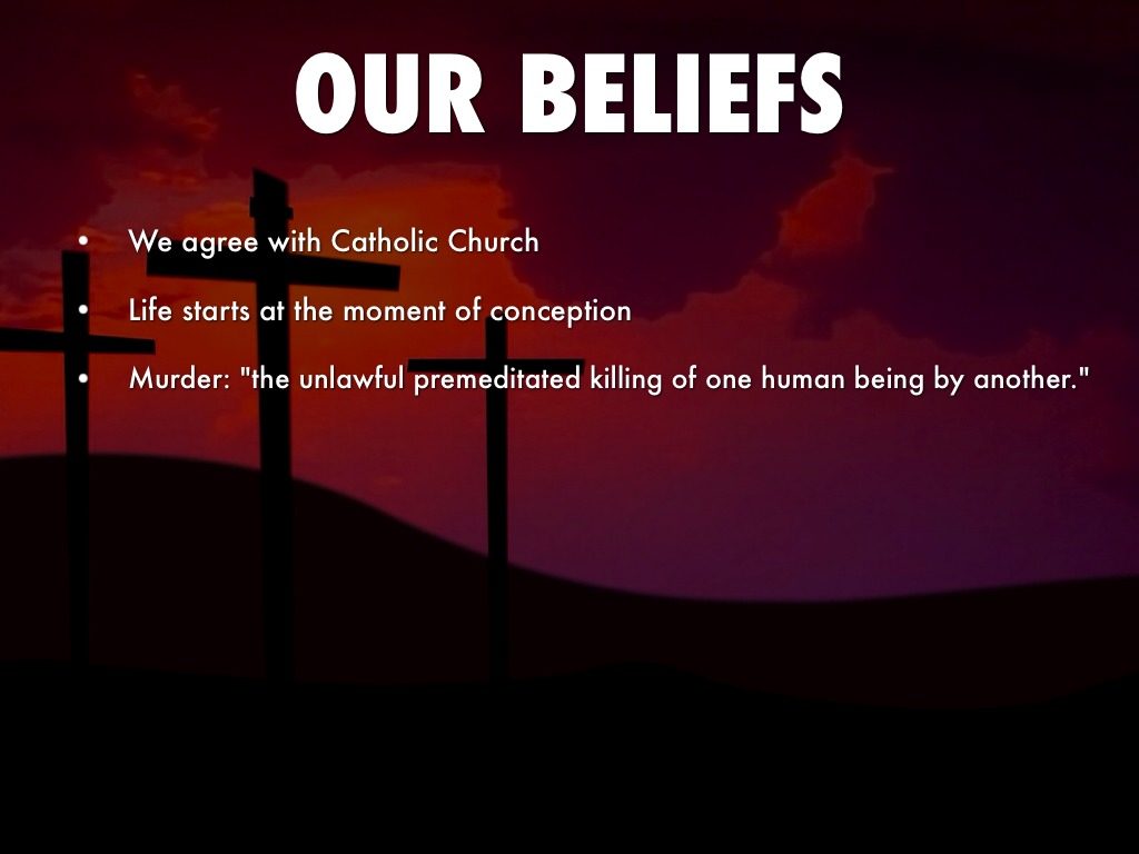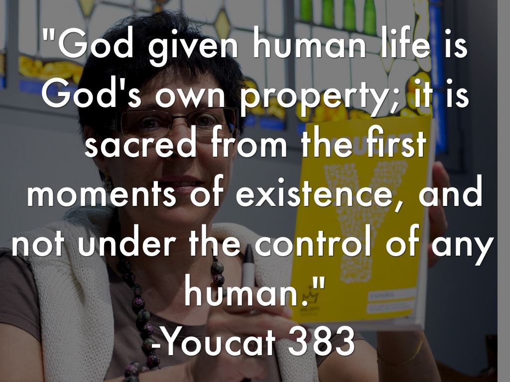 "God given human life is God's own property; it is sacred from the first moments of existence, and not under the control of any human."
