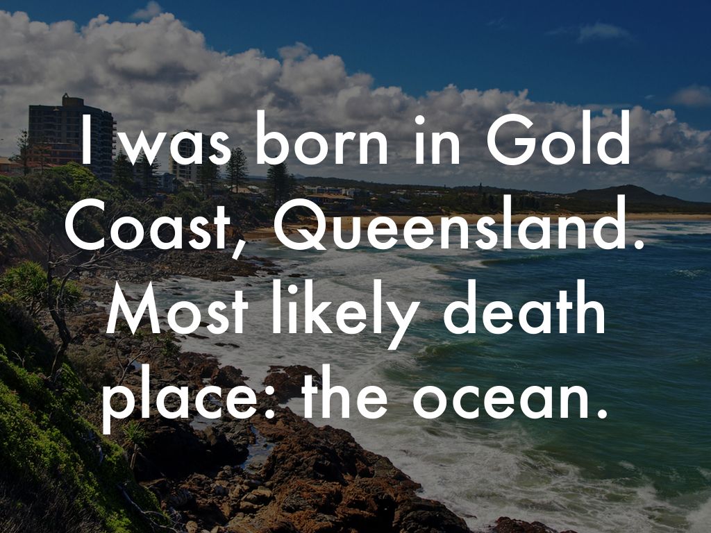 I was born in Gold Coast, Queensland. Most likely death place: the ocean.