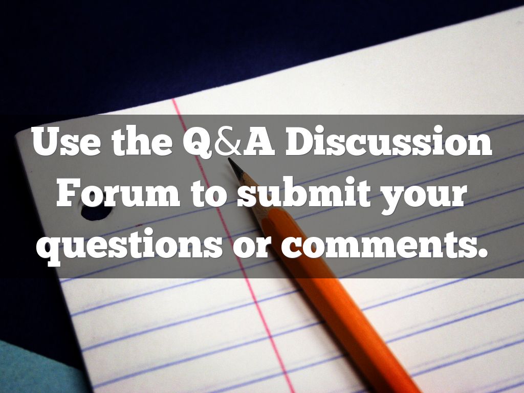 Use the Q&A Discussion Forum to submit your questions or comments.