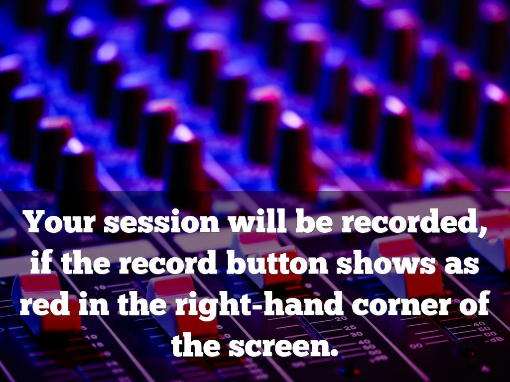 Your session will be recorded, if the record button shows as red in the right-hand corner of the screen.