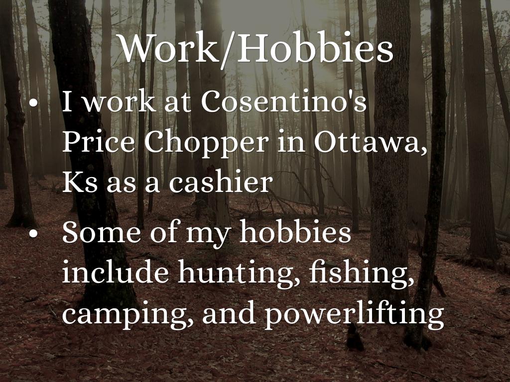 • Some of my hobbies include hunting, fishing, camping, and powerlifting