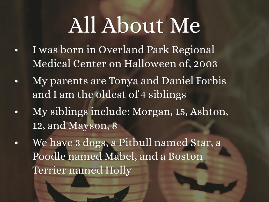 • I was born in Overland Park Regional Medical Center on Halloween of, 2003