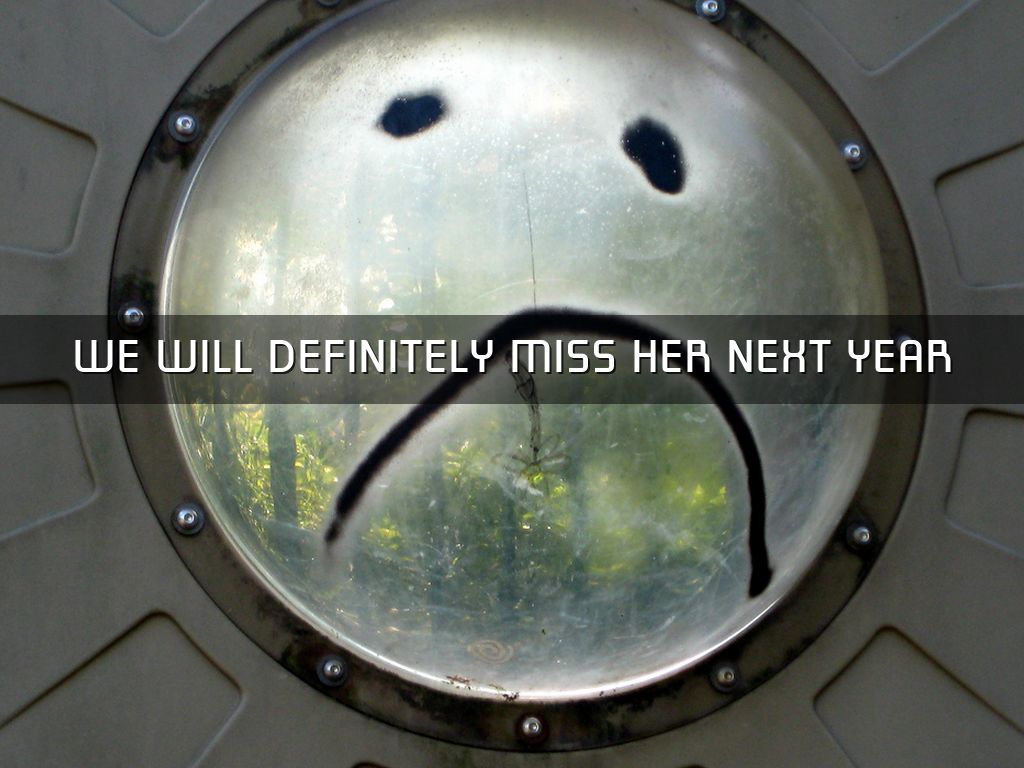 WE WILL DEFINITELY MISS HER NEXT YEAR