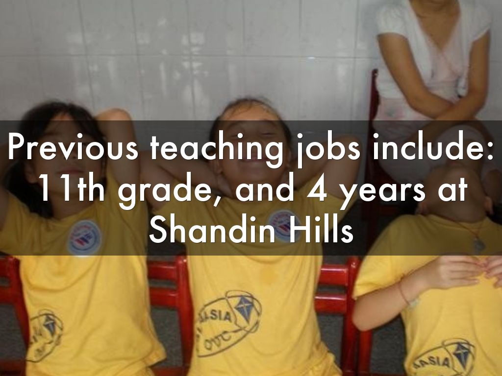 Previous teaching jobs include: 11th grade, and 4 years at Shandin Hills