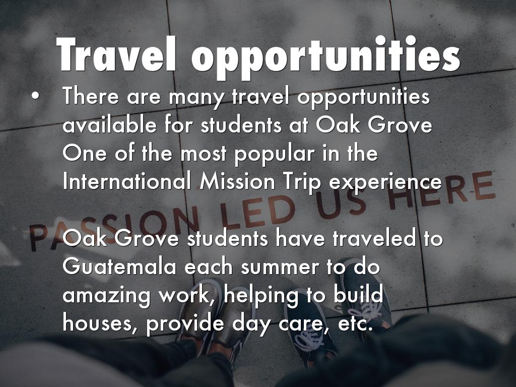 Oak Grove students have traveled to Guatemala each summer to do amazing work, helping to build houses, provide day care, etc.