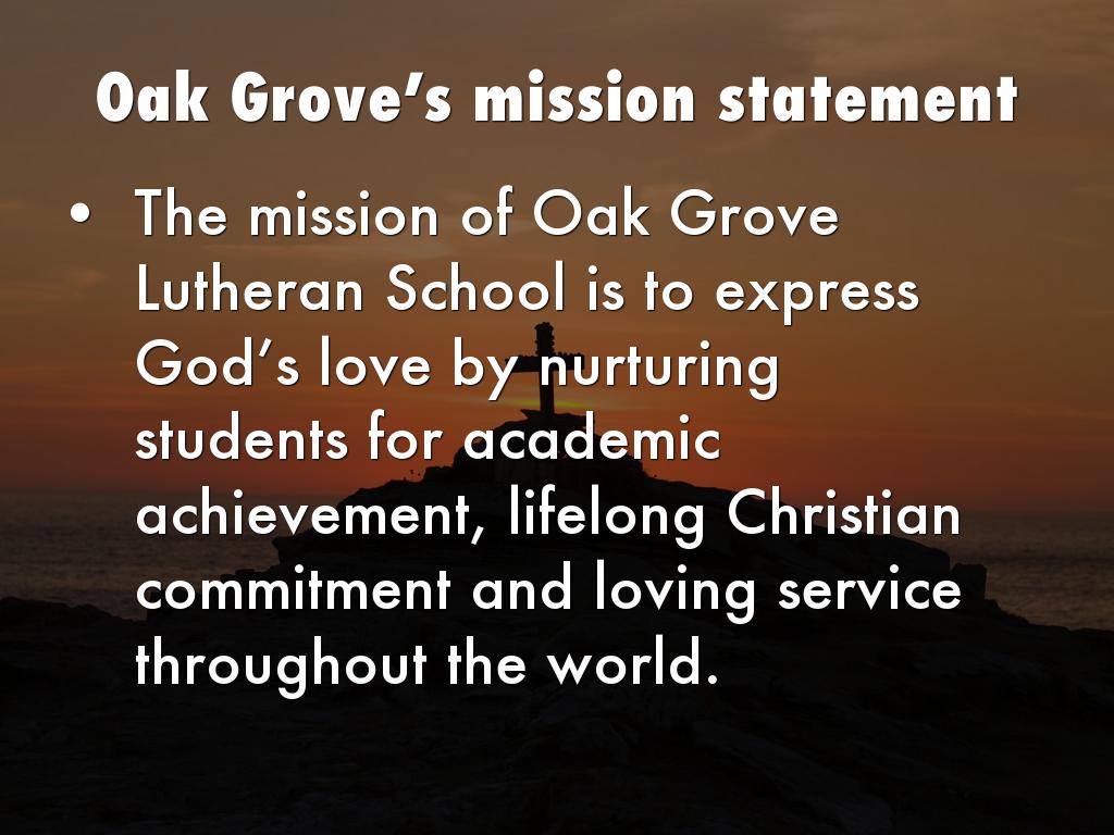 The mission of Oak Grove Lutheran School is to express God’s love by nurturing students for academic achievement, lifelong Christian commitment and loving service throughout the world.