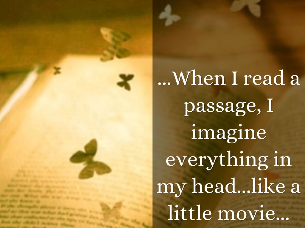 ...When I read a passage, I imagine everything in my head...like a little movie...