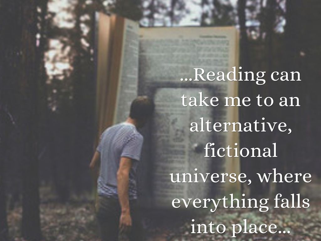 ...Reading can take me to an alternative, fictional universe, where everything falls into place...