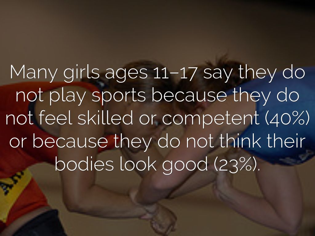 Many girls ages 11–17 say they do not play sports because they do not feel skilled or competent (40%) or because they do not think their bodies look good (23%).