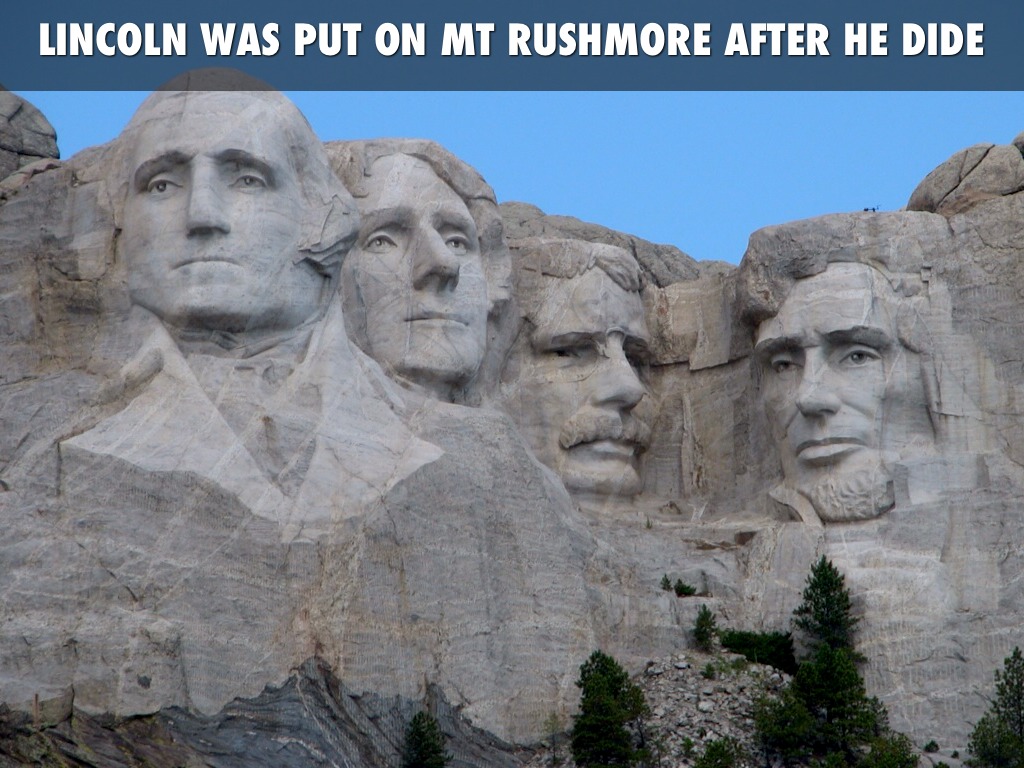 LINCOLN WAS PUT ON MT RUSHMORE AFTER HE DIDE