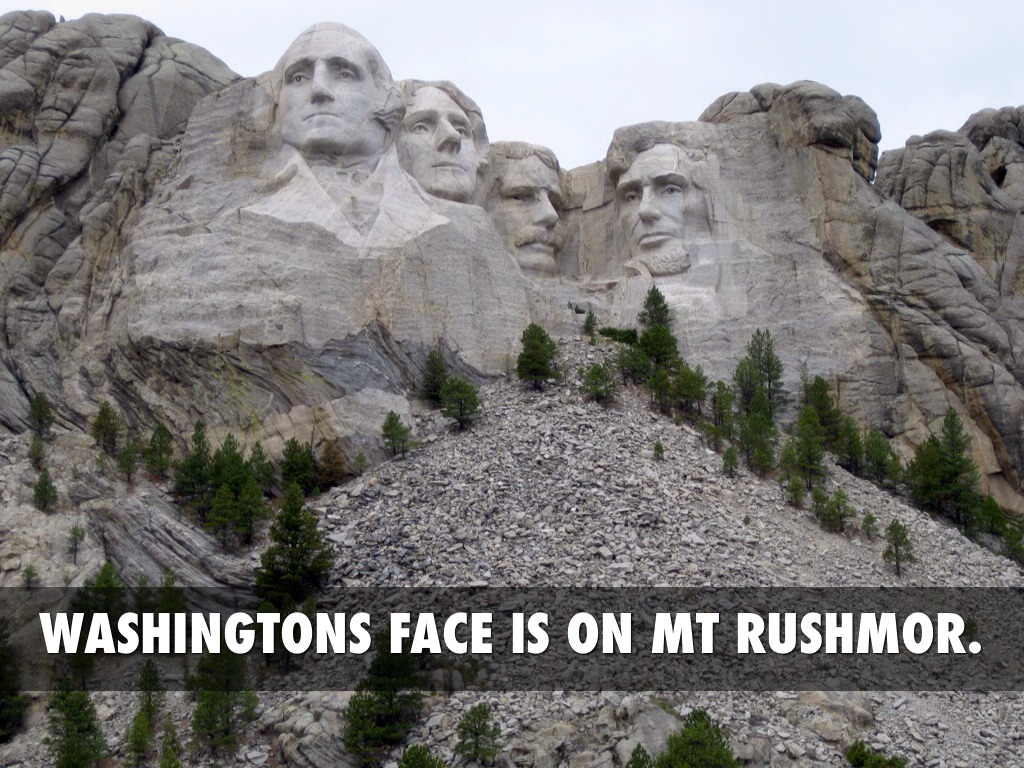 WASHINGTONS FACE IS ON MT RUSHMOR.