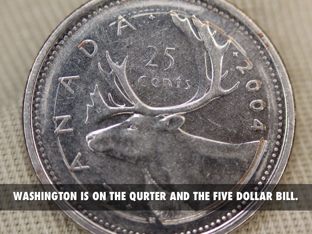 WASHINGTON IS ON THE QURTER AND THE FIVE DOLLAR BILL.