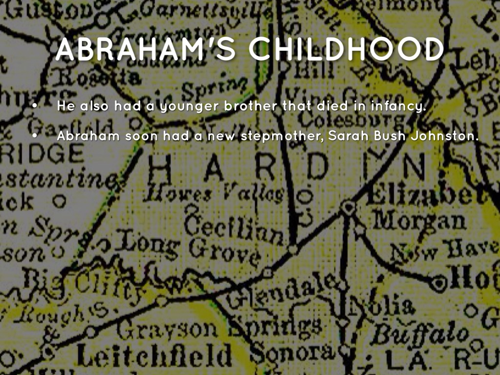 Abraham soon had a new stepmother, Sarah Bush Johnston.