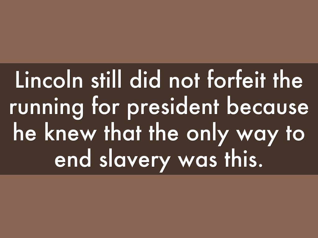 Lincoln still did not forfeit the running for president because he knew that the only way to end slavery was this.