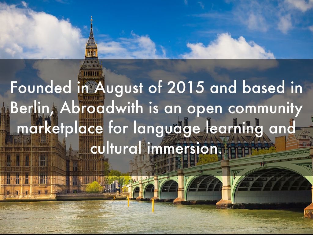 Founded in August of 2015 and based in Berlin, Abroadwith is an open community marketplace for language learning and cultural immersion.