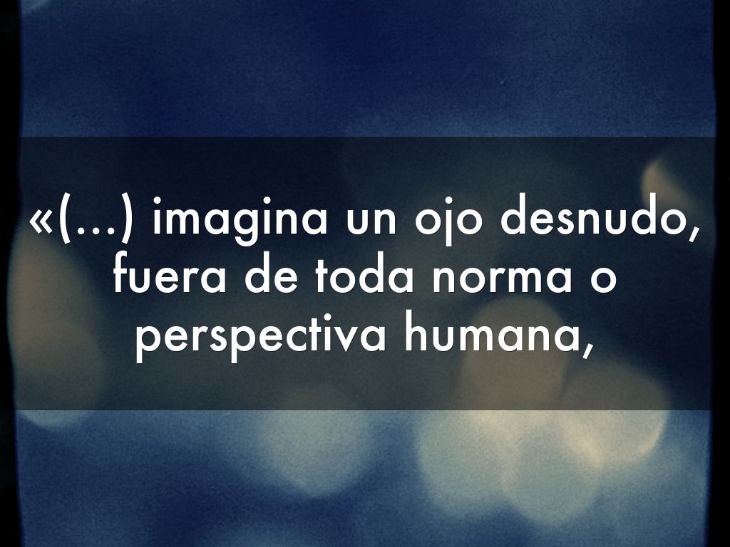«(...) imagina un ojo desnudo, fuera de toda norma o perspectiva humana,