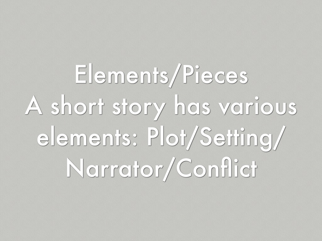A short story has various elements: Plot/Setting/Narrator/Conflict