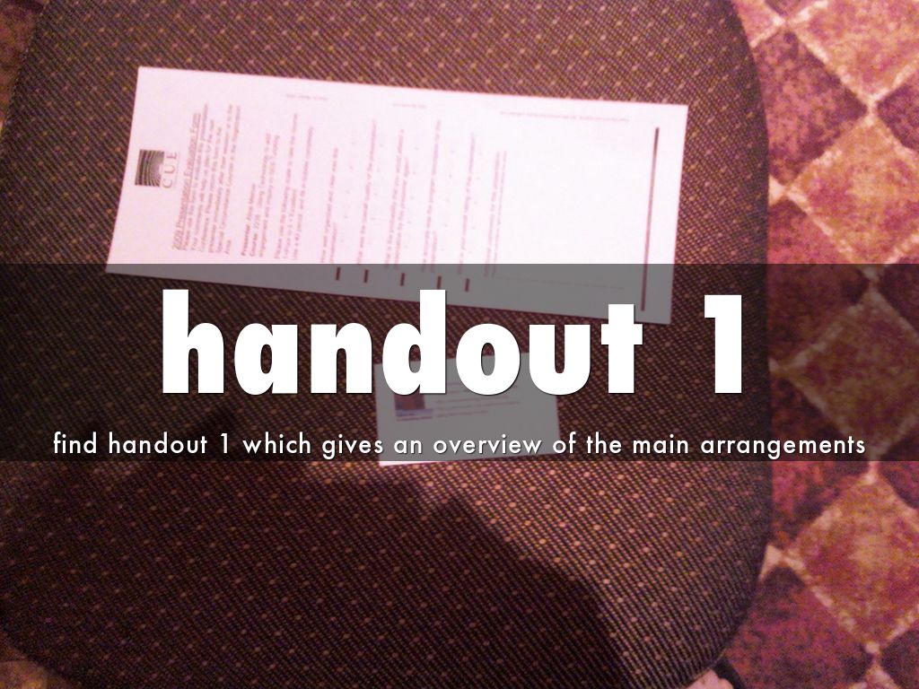 find handout 1 which gives an overview of the main arrangements