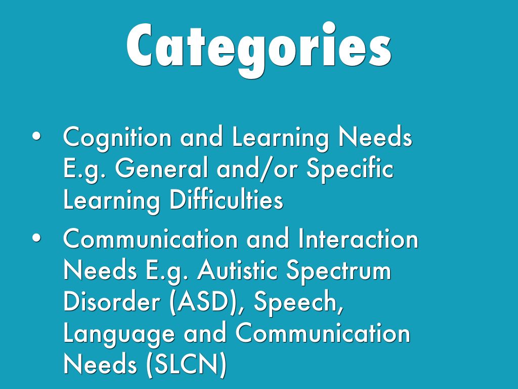 Cognition and Learning Needs E.g. General and/or Specific Learning Difficulties