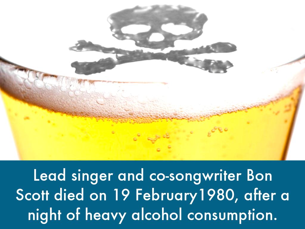Lead singer and co-songwriter Bon Scott died on 19 February1980, after a night of heavy alcohol consumption.