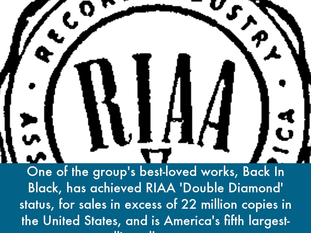 One of the group's best-loved works, Back In Black, has achieved RIAA 'Double Diamond' status, for sales in excess of 22 million copies in the United States, and is America's fifth largest-selling album ever.