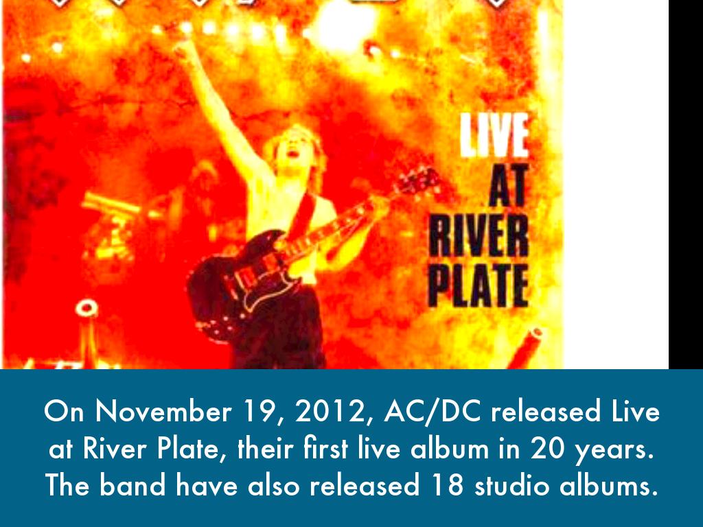 On November 19, 2012, AC/DC released Live at River Plate, their first live album in 20 years. The band have also released 18 studio albums.