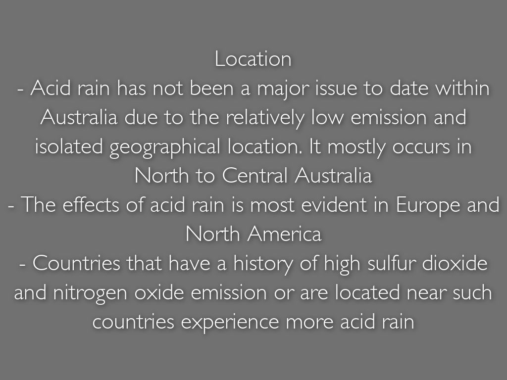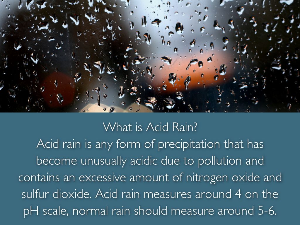 Acid rain has a major negative impact on the environment. Acid rain that falls into any aquatic environment can alter the pH of the water a inhibiting the survival of various plant and animal species. Acid rain on soil can kill useful micro-organisms and leach nutrients of soil causing infertile soil. Due to acid's corrosive nature, it also has an effect on forest, architecture and buildings. Sulfur dioxide and nitrogen oxide gases in the atmosphere degrades visibility and can cause accidents, leading to injuries and deaths.