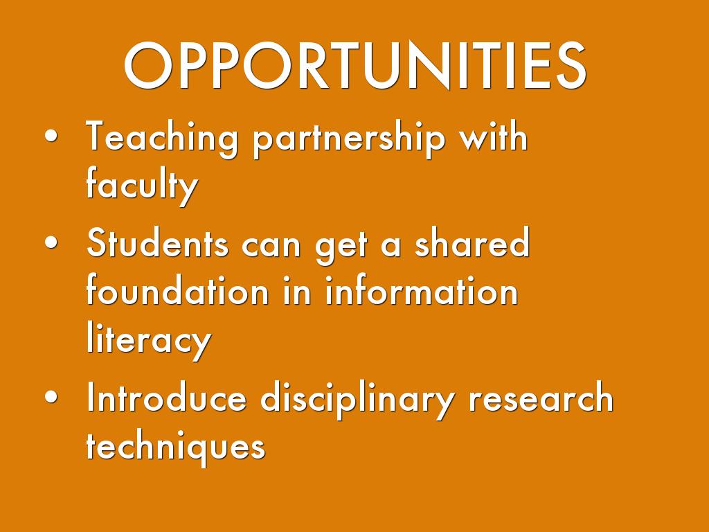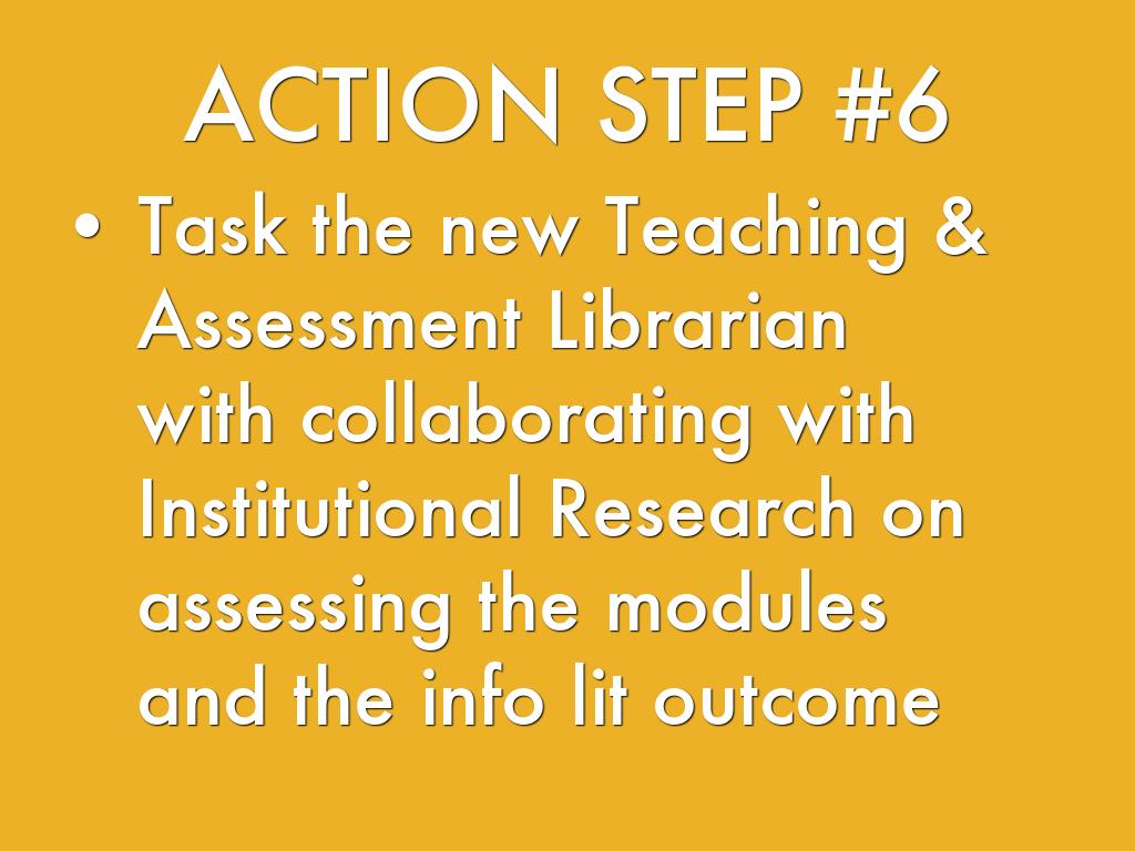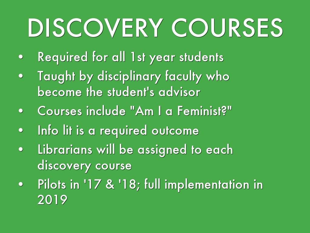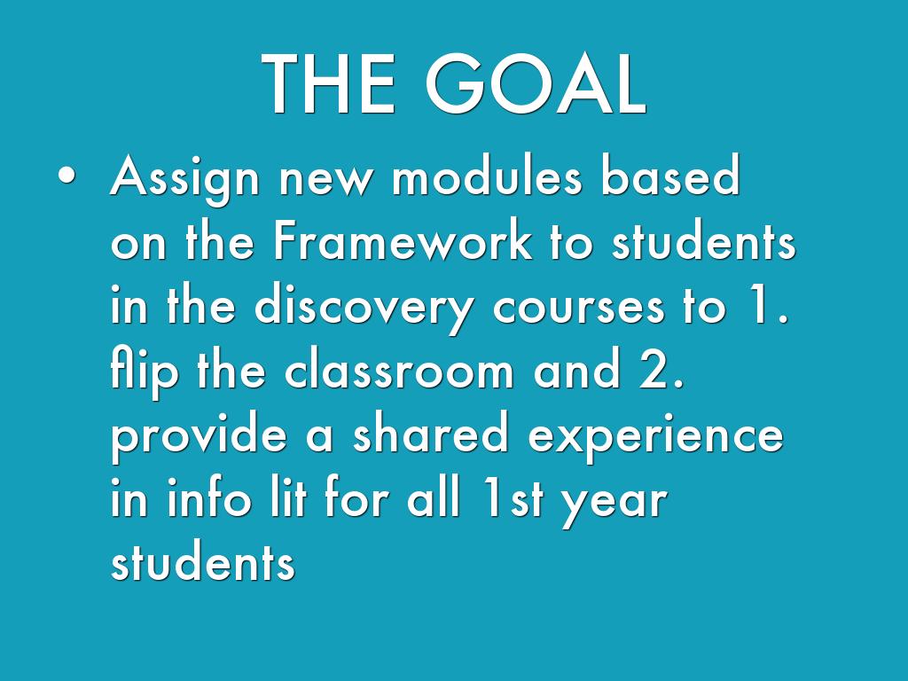 Assign new modules based on the Framework to students in the discovery courses to 1. flip the classroom and 2. provide a shared experience in info lit for all 1st year students