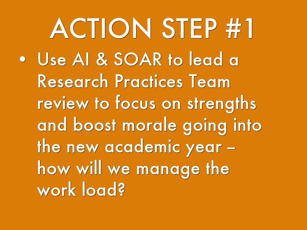 Use AI & SOAR to lead a Research Practices Team review to focus on strengths and boost morale going into the new academic year -- how will we manage the work load?
