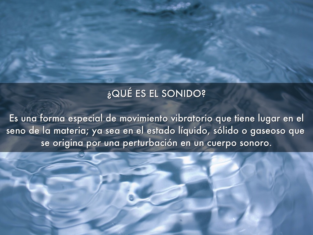 Es una forma especial de movimiento vibratorio que tiene lugar en el seno de la materia; ya sea en el estado líquido, sólido o gaseoso que se origina por una perturbación en un cuerpo sonoro.