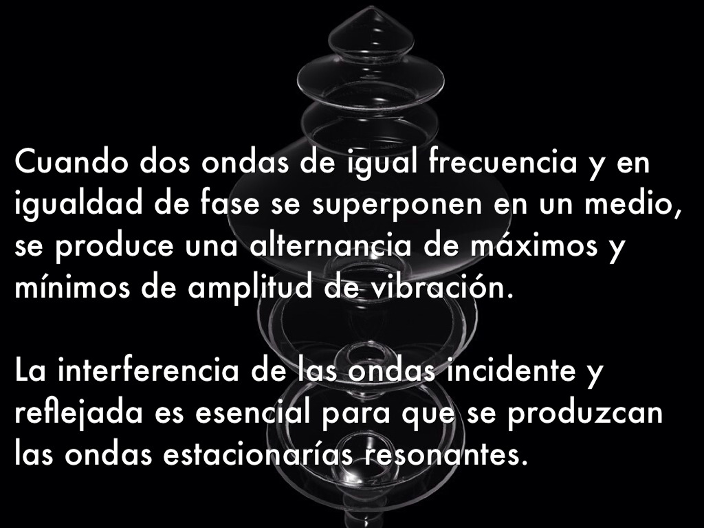 Cuando dos ondas de igual frecuencia y en igualdad de fase se superponen en un medio, se produce una alternancia de máximos y mínimos de amplitud de vibración.