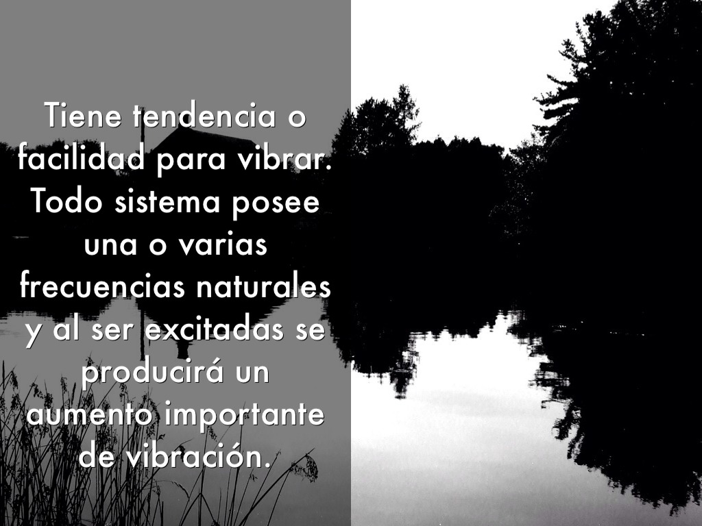 Tiene tendencia o facilidad para vibrar. Todo sistema posee una o varias frecuencias naturales y al ser excitadas se producirá un aumento importante de vibración.
