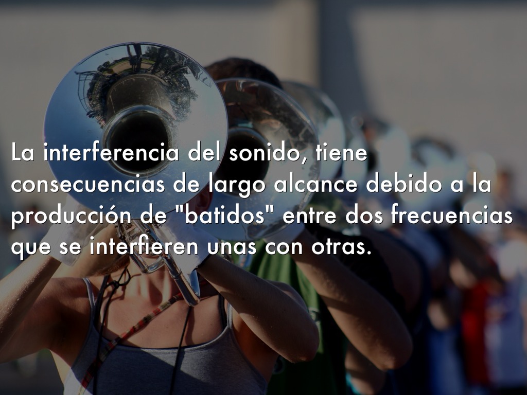 La interferencia del sonido, tiene consecuencias de largo alcance debido a la producción de "batidos" entre dos frecuencias que se interfieren unas con otras.