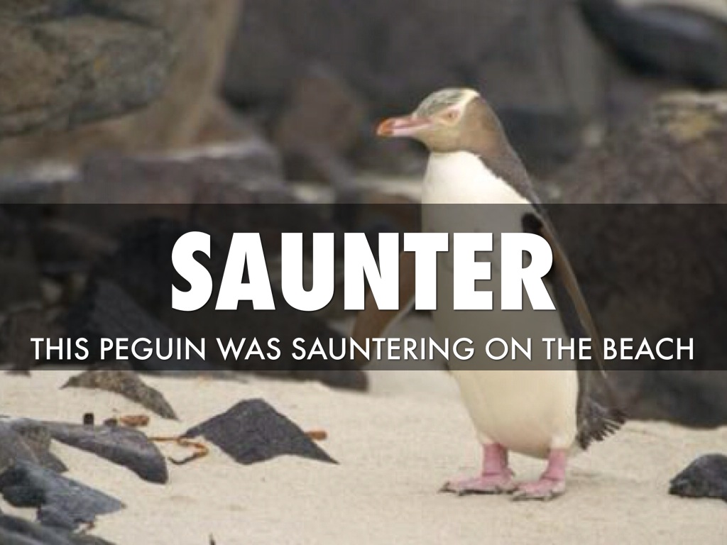THIS PEGUIN WAS SAUNTERING ON THE BEACH