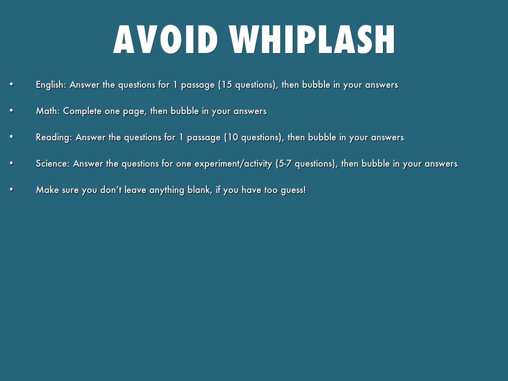 Reading: Answer the questions for 1 passage (10 questions), then bubble in your answers