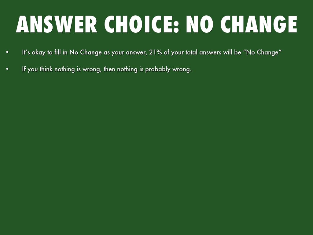 It’s okay to fill in No Change as your answer, 21% of your total answers will be “No Change”