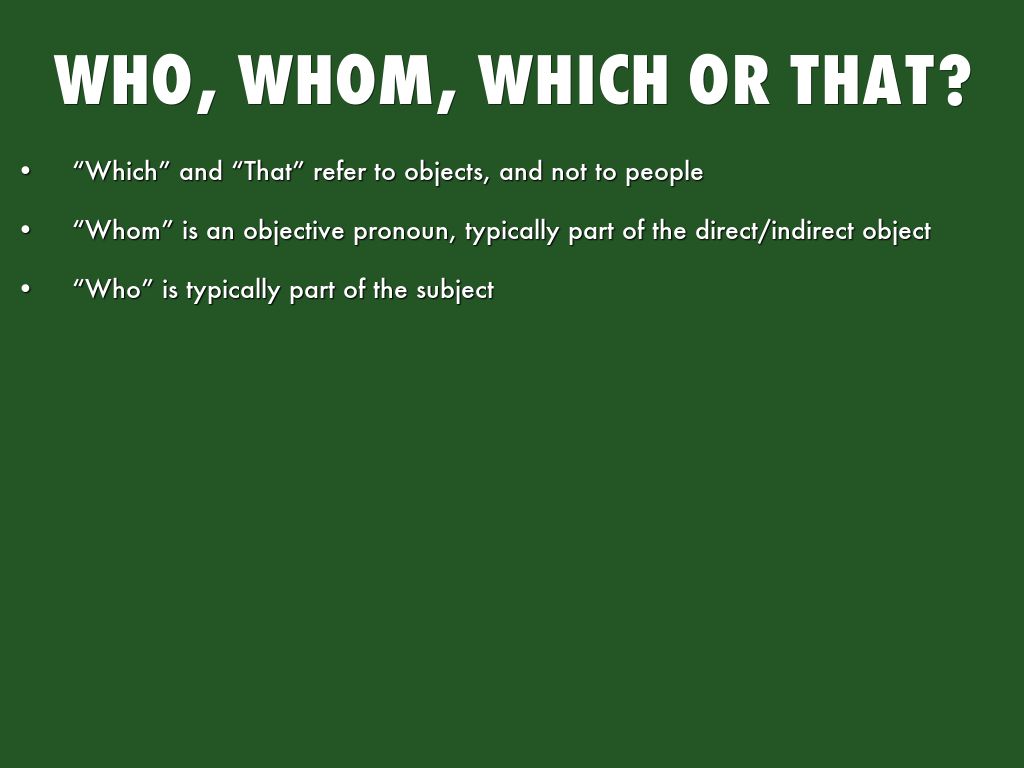 “Whom” is an objective pronoun, typically part of the direct/indirect object
