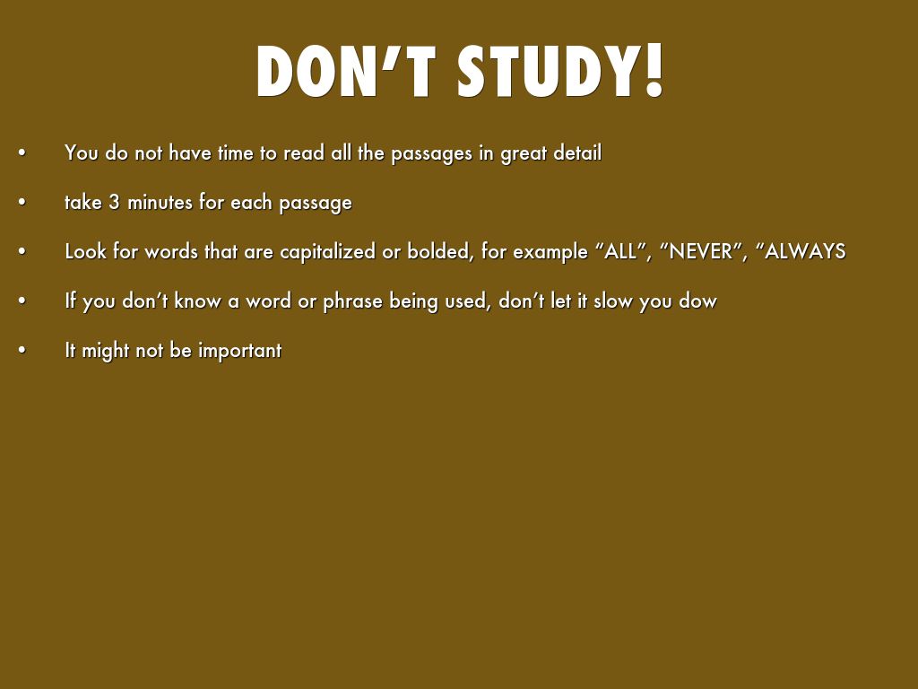 Look for words that are capitalized or bolded, for example “ALL”, “NEVER”, “ALWAYS