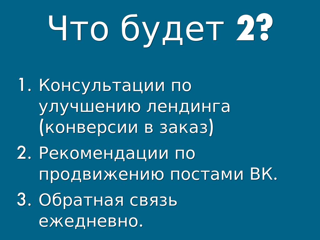 - Консультации по улучшению лендинга (конверсии в заказ)