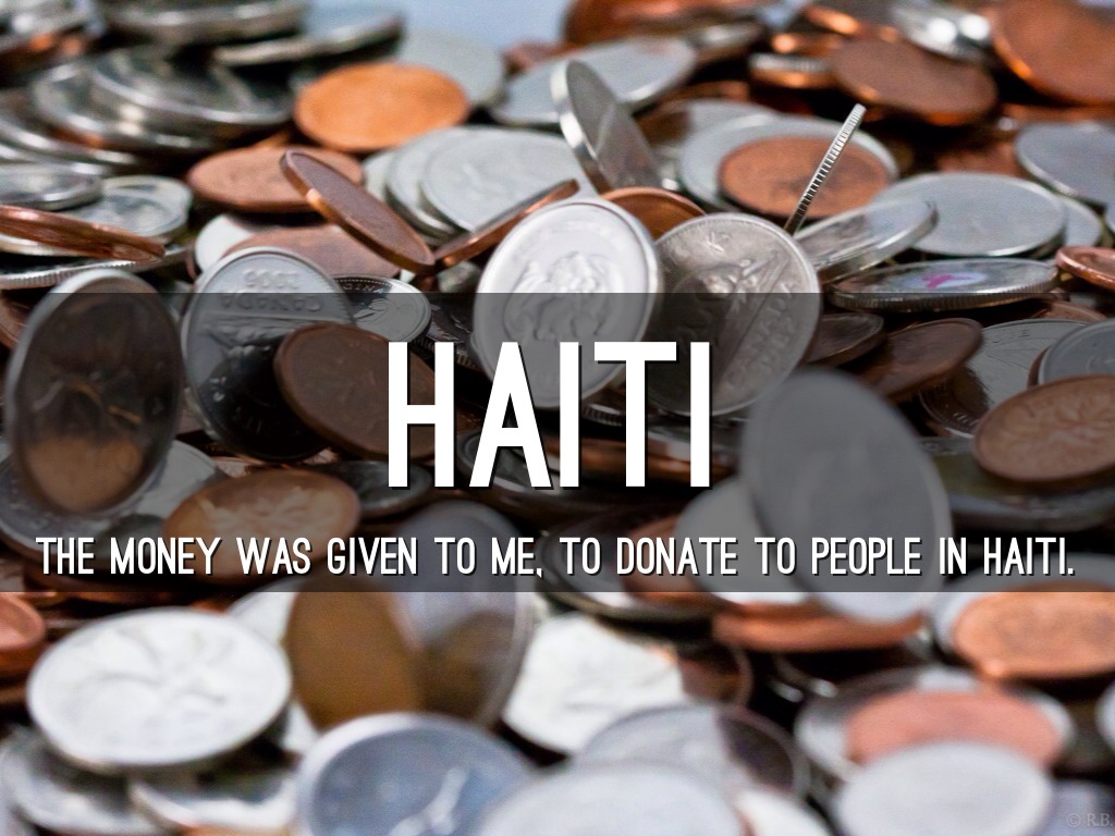 THE MONEY WAS GIVEN TO ME, TO DONATE TO PEOPLE IN HAITI.