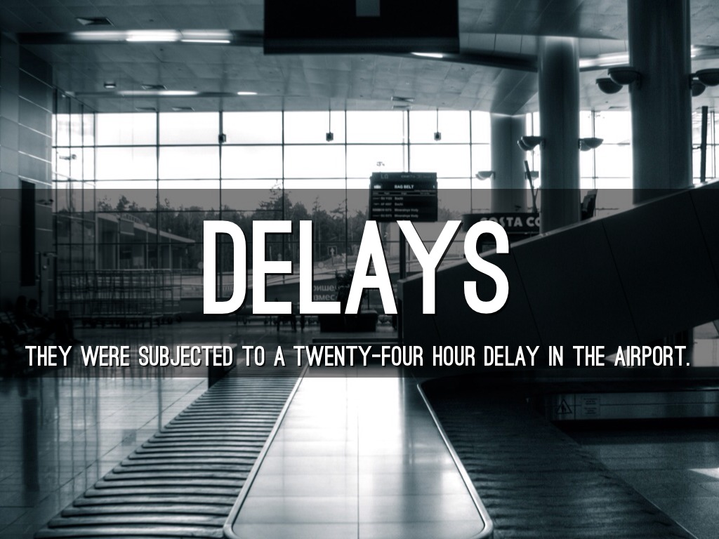 THEY WERE SUBJECTED TO A TWENTY-FOUR HOUR DELAY IN THE AIRPORT.