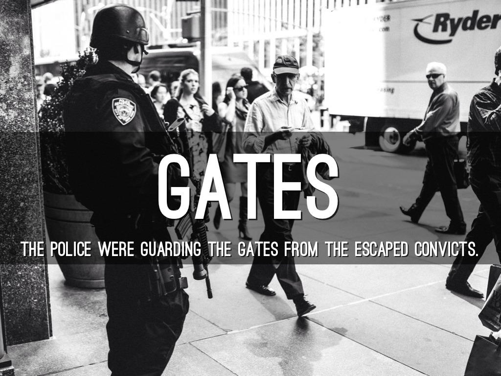 THE POLICE WERE GUARDING THE GATES TO CATCH THE ESCAPED CONVICTS.