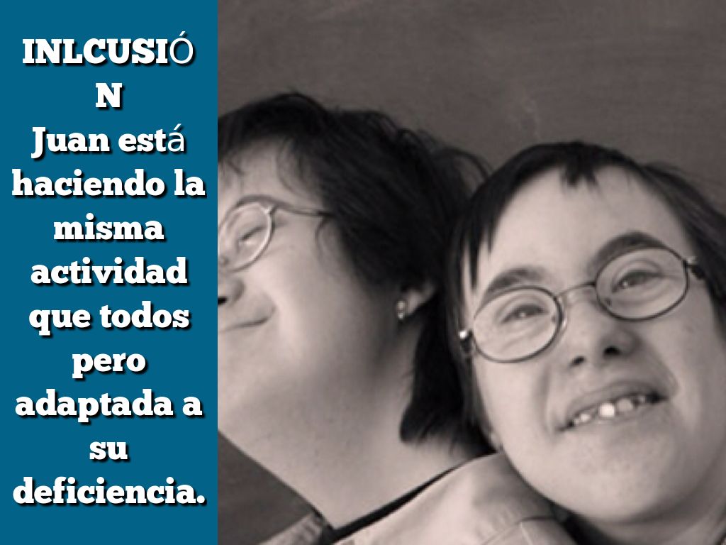 Juan está haciendo la misma actividad que todos pero adaptada a su deficiencia.