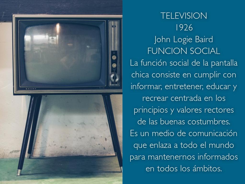 La función social de la pantalla chica consiste en cumplir con informar, entretener, educar y recrear centrada en los principios y valores rectores de las buenas costumbres.