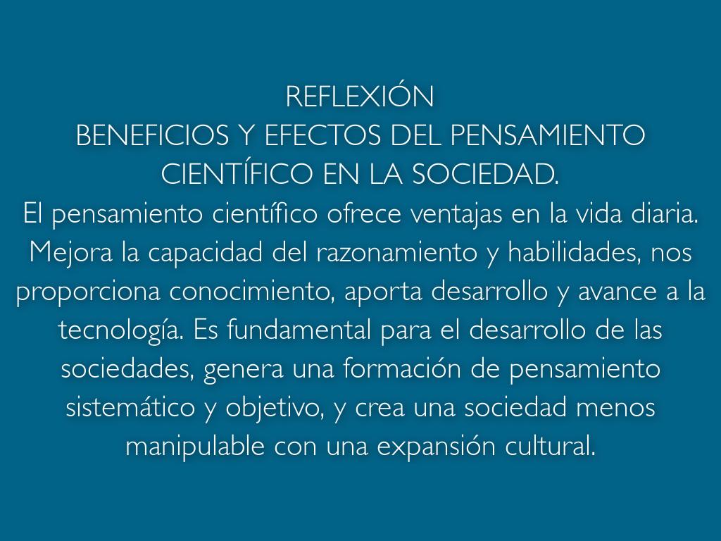 BENEFICIOS Y EFECTOS DEL PENSAMIENTO CIENTÍFICO EN LA SOCIEDAD.
