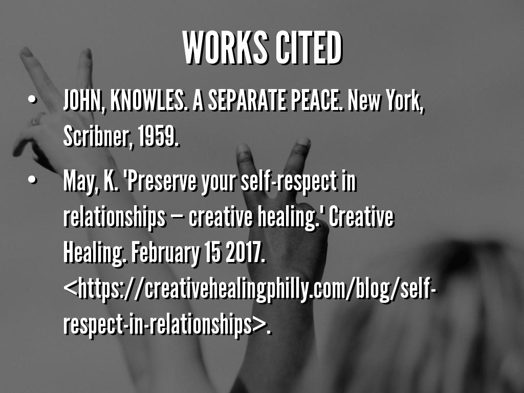 • May, K. "Preserve your self-respect in relationships — creative healing." Creative Healing. February 15 2017. .