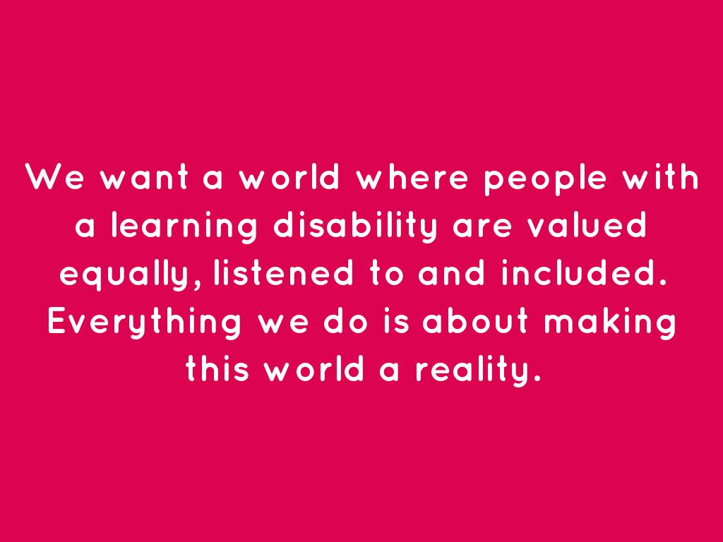 We want a world where people with a learning disability are valued equally, listened to and included. Everything we do is about making this world a reality.