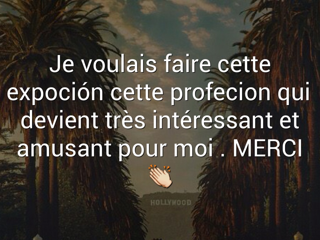 Je voulais faire cette expoción cette profecion qui devient très intéressant et amusant pour moi . MERCI 👏